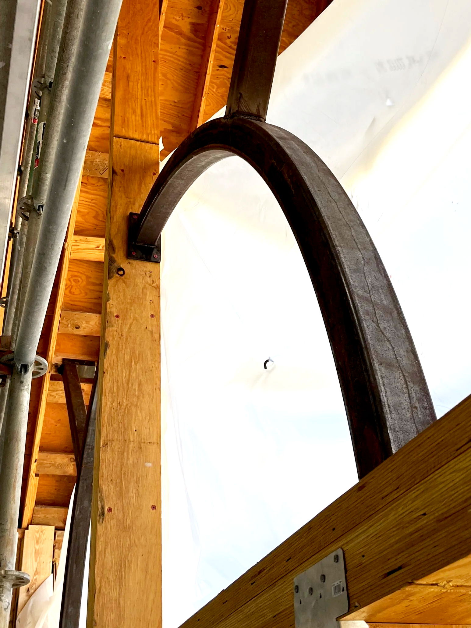 Supporting the existing vaulted ceiling and ridge beam with a 28’ king post and allowing for a cantilevered roofline over the rear deck, further opening up the views and mitigating future maintenance items.